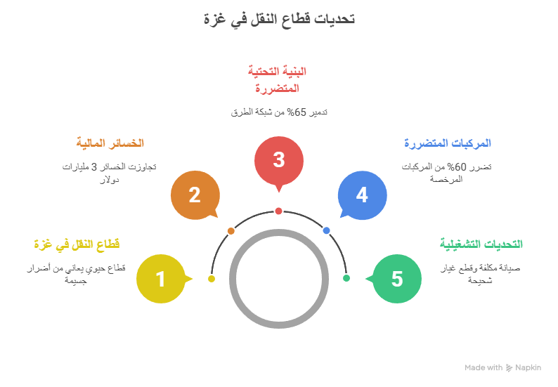 وتعكس هذه القصص واقع القطاع وبنيته التحتية التي تضررت بشدة، فوفق تقديرات محلية، تجاوزت خسائر قطاع النقل في غزة 3 مليارات دولار، مع تدمير نحو 65% من شبكة الطرق، وهو ما يعادل 945 كيلومترًا، إلى جانب تضرر أكثر من 55 ألف مركبة، أي نحو 60% من المركبات المرخصة.